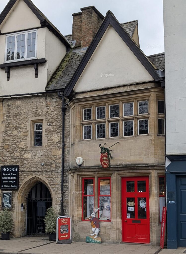 La tienda Alice´s está localizada justo en frente de la entrada a Christ Church College, y se trata de una tienda muy pequeña de Alicia en el país de las maravillas. Aquí encontraréis libros y regalos relacionados con este libro del autor Lewis Carrol, y esta tienda aparece en sus libros.