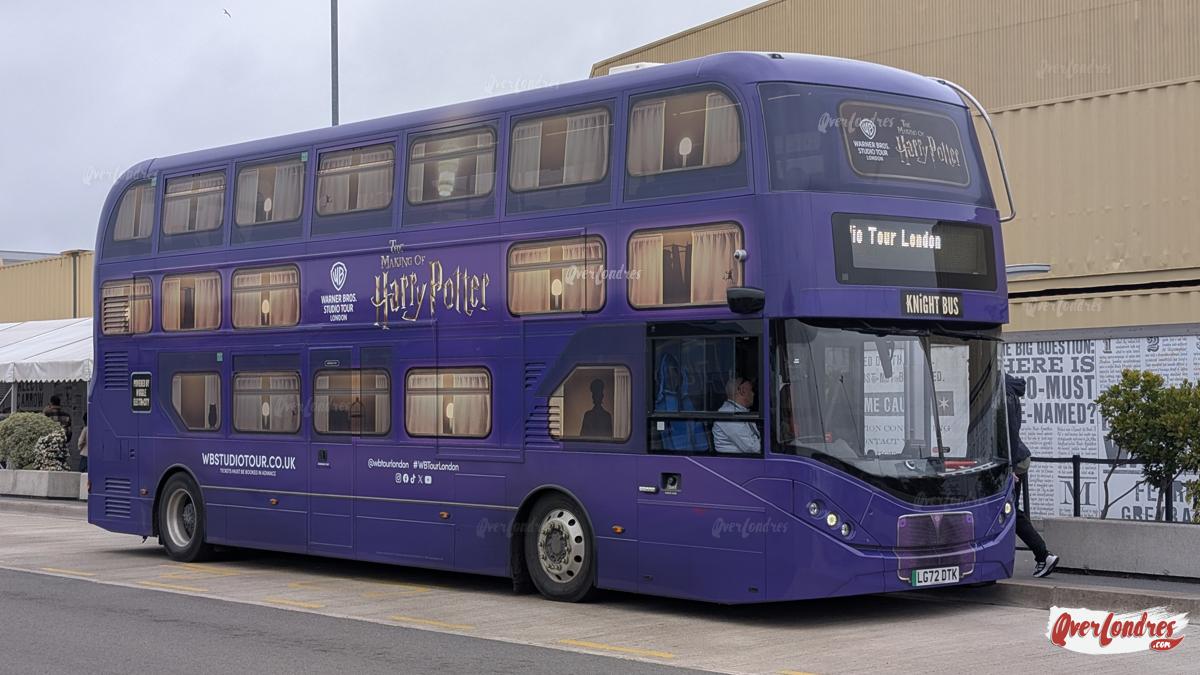 Una opción sencilla es comprar las entradas para los Estudios de Harry Potter con transporte incluido de ida y vuelta desde el centro de Londres en autobús. Suele ser un autobús temático como el de la foto, así que no tiene pérdida!